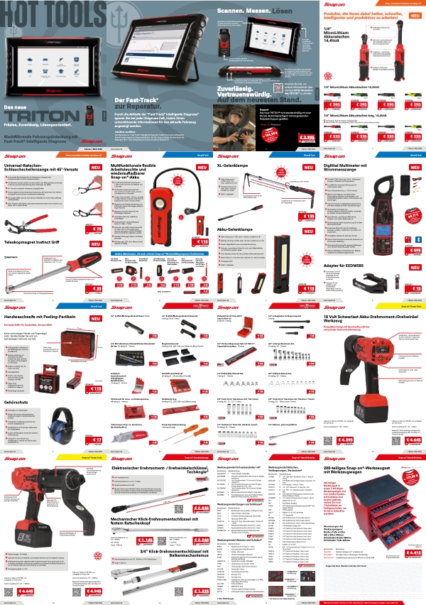Hier findet ihr die aktuellen Angebote von Snap-on Tools. Von Werkzeugen und Diagnosegeräten für eure Kfz-Werkstatt bis hin zum kompletten Equipment ist alles dabei. Es ist ganz einfach, ladet euch die Flyer, blättert sie durch und wenn ihr Interesse an einem oder mehreren Werkzeugen habt, schreibt mir einfach per Mail oder ruft mich unter 0175-5619314 an. Ich komme natürlich auch zwecks Vorführung gerne bei euch vorbei.