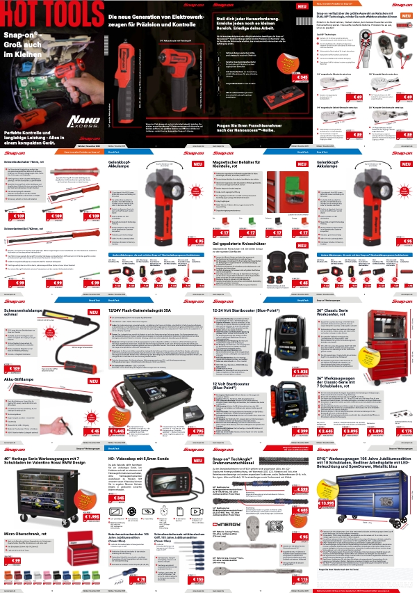 Hier findet ihr die aktuellen Angebote von Snap-on Tools. Von Werkzeugen und Diagnosegeräten für eure Kfz-Werkstatt bis hin zum kompletten Equipment ist alles dabei. Es ist ganz einfach, ladet euch die Flyer, blättert sie durch und wenn ihr Interesse an einem oder mehreren Werkzeugen habt, schreibt mir einfach per Mail oder ruft mich unter 0175-5619314 an. Ich komme natürlich auch zwecks Vorführung gerne bei euch vorbei.